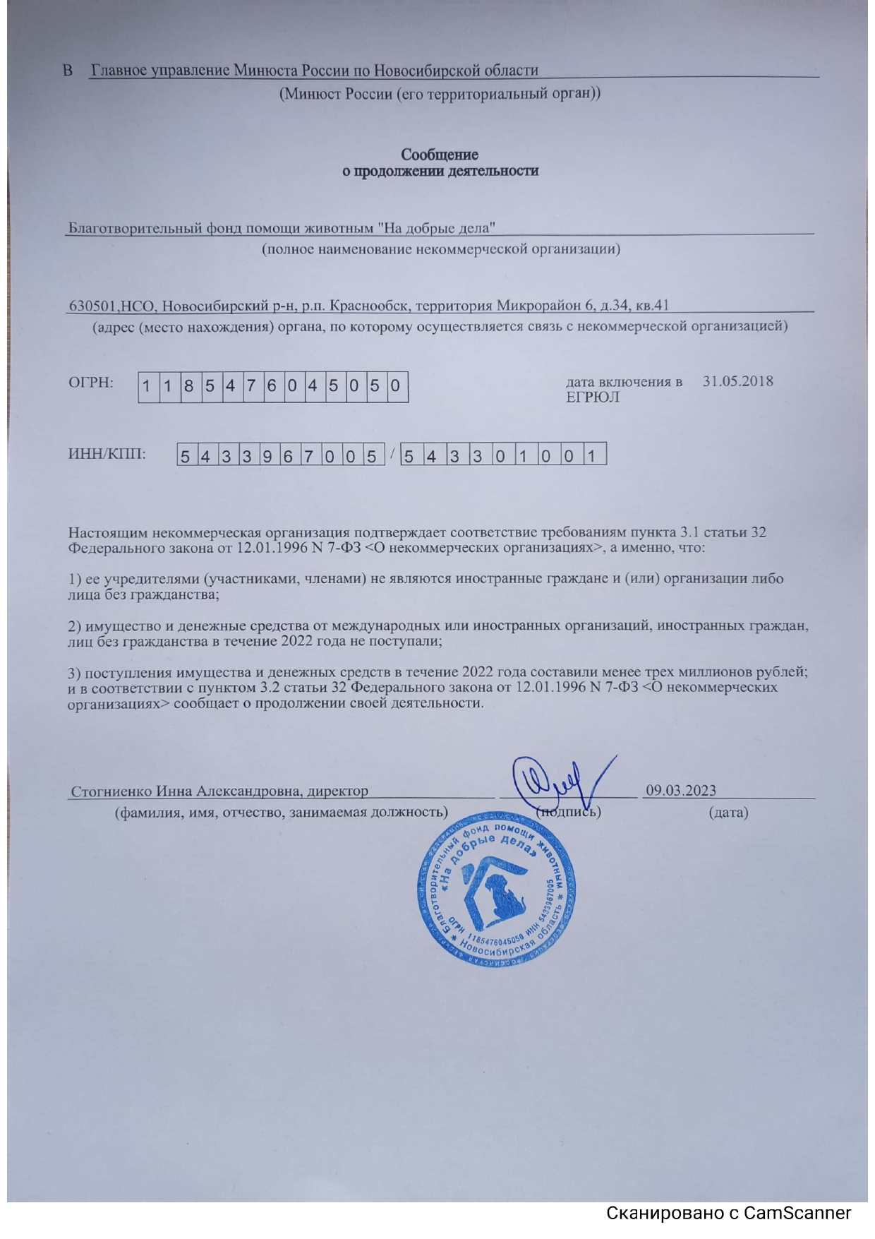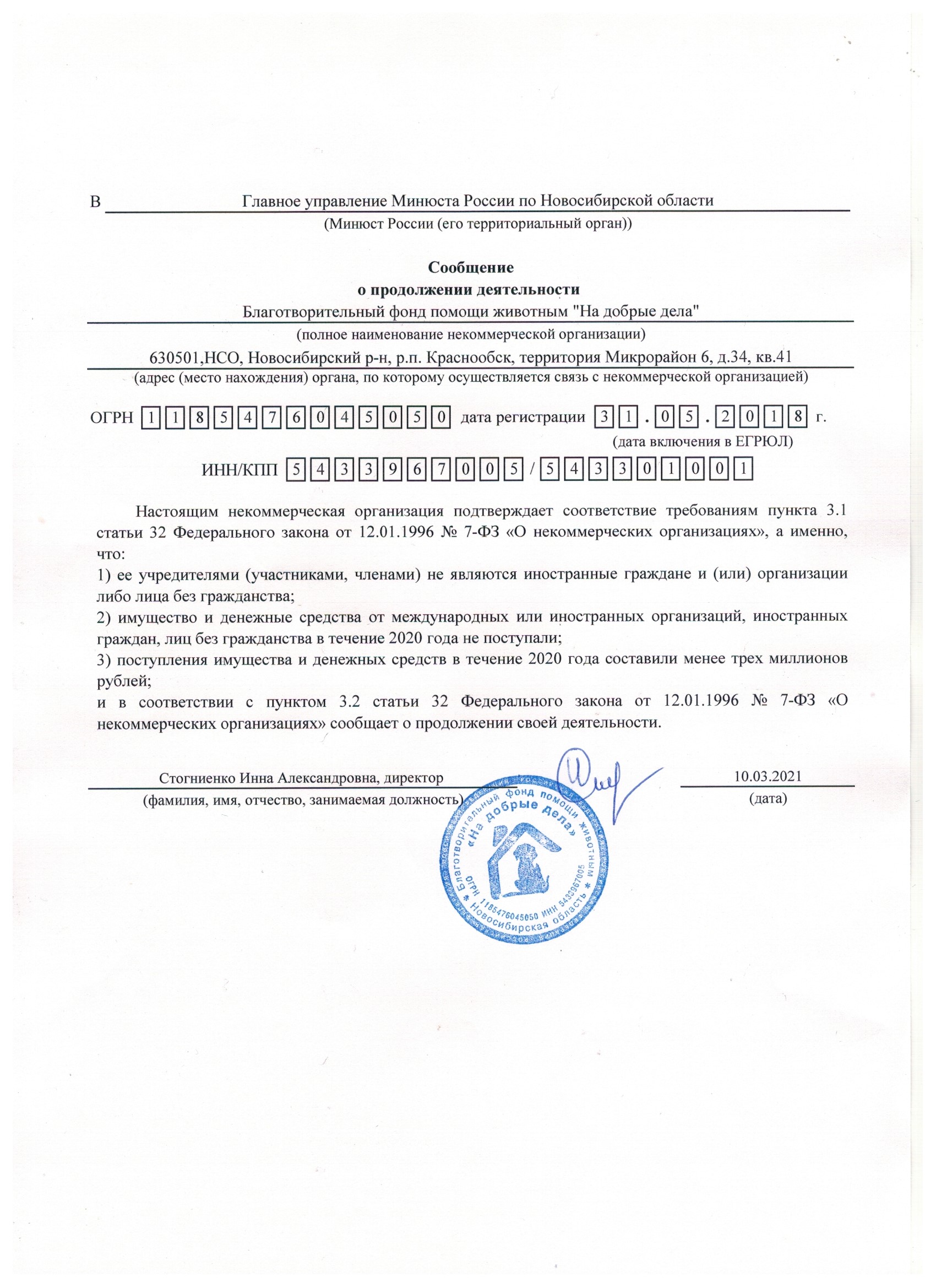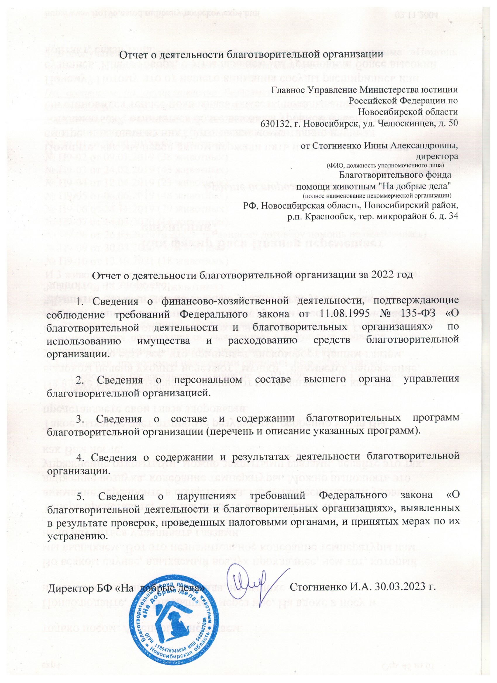 Этот день по праву считается днём рождения нашего Фонда. Именно в апреле 1998 года группа энтузиастов создала волонтёрское зоозащитное движение «НА ДОБРЫЕ ДЕЛА», которое 31 мая 2018 года прошло государственную регистрацию в виде Благотворительного Фонда помощи животным "НА ДОБРЫЕ ДЕЛА" (ОГРН 1185476045050) учётный номер в реестре благотворительных организаций Министерства юстиции РФ 5414010994